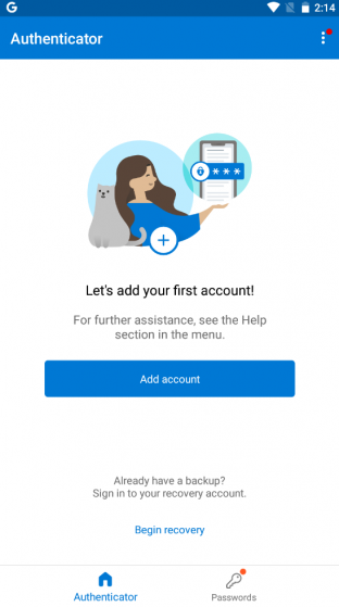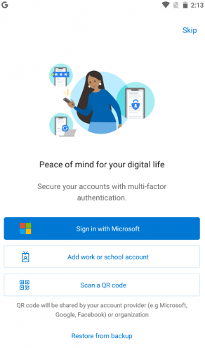 Download the app, open it, and allow notifications if prompted. If it’s your first time launching the app, you will usually see a screen with the option to ‘Scan a QR code’: select that. If you don’t see that screen, select ‘Add account’, either from the button in the center of the screen, or from the three-dot menu in the upper right. Select ‘Work or school account’ on the next screen and choose ‘Scan a QR code’.